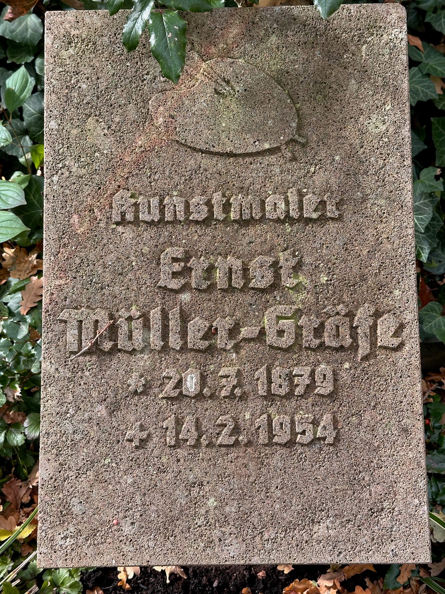 Hier liegt der Maler Ernst Müller-Gräfe. Er wurde 1879 geboren und starb 1954. Er liebte seine Heimat und malte sein ganzes Leben lang hier in Altenburg.