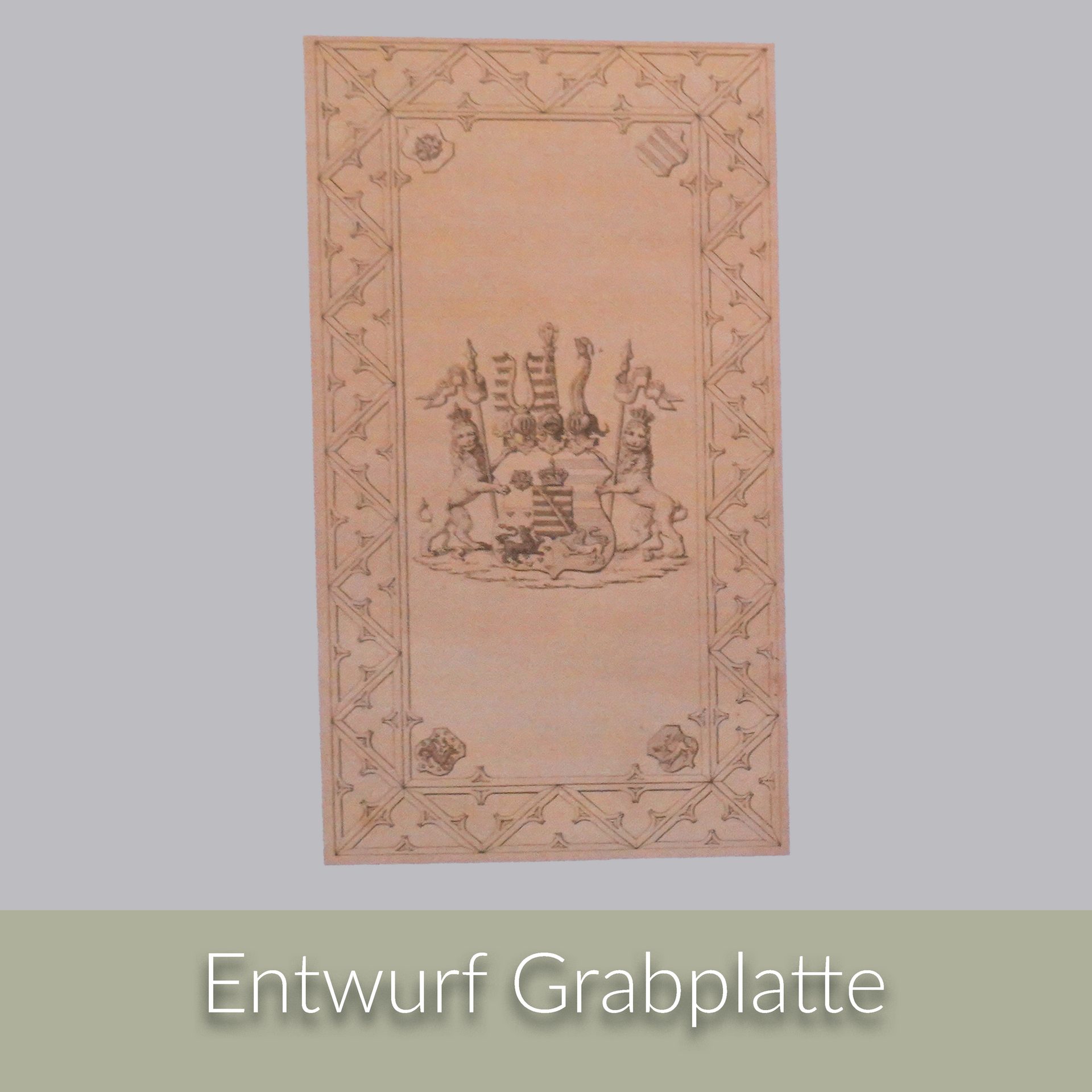 Von außen wirkte die Gruft schlicht, aber würdevoll: ein länglicher, kirchenähnlicher Bau mit markantem Eingangsportal. Ziergiebel, drei obeliskartige Steinsäulen auf dem Dach, Spitzbögen und das Wettiner Wappen – alles typisch neugotisch.