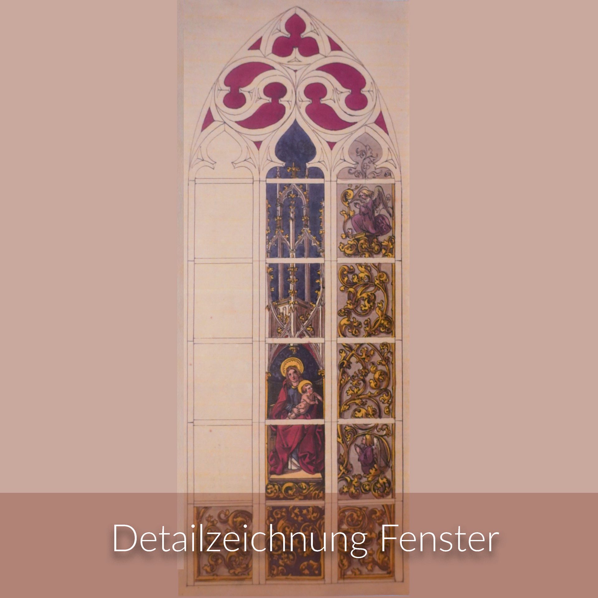 Besonders eindrucksvoll: die je fünf Fenster auf jeder Längsseite. Noch heute faszinieren die wenigen erhaltenen farbigen Glasreste, wenn Licht hindurchfällt. Geplant war weit mehr: verspieltes Maßwerk, goldene Bemalungen und christliche Motive wie Maria mit dem Christuskind – ganz im Stil der großen Kirchenmaler jener Zeit. Diese Entwürfe wurden allerdings nie verwirklicht. Was hätte werden können, zeigt: Man dachte hier groß.