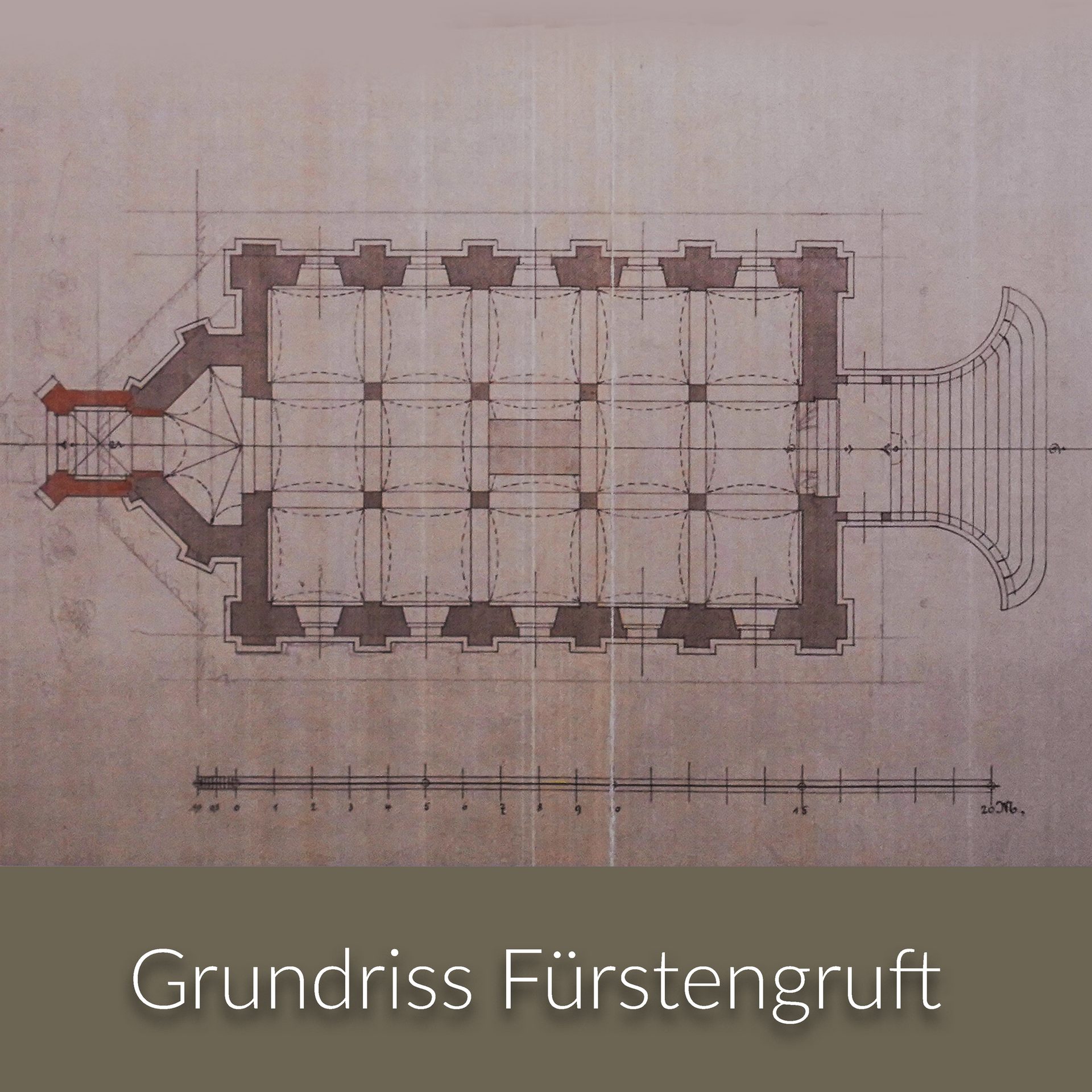 Die Gruft war zweigeteilt: Im Untergeschoss befand sich ein Kellergewölbe, getragen von acht Säulen – bewusst nicht allzu tief angelegt. Darüber lag die eigentliche Gedenkhalle, wo die Särge aufgestellt waren. Der Boden aus achteckigem Sandstein und rotem Rochlitzer Porphyr verlieh dem Raum fürstliche Würde.